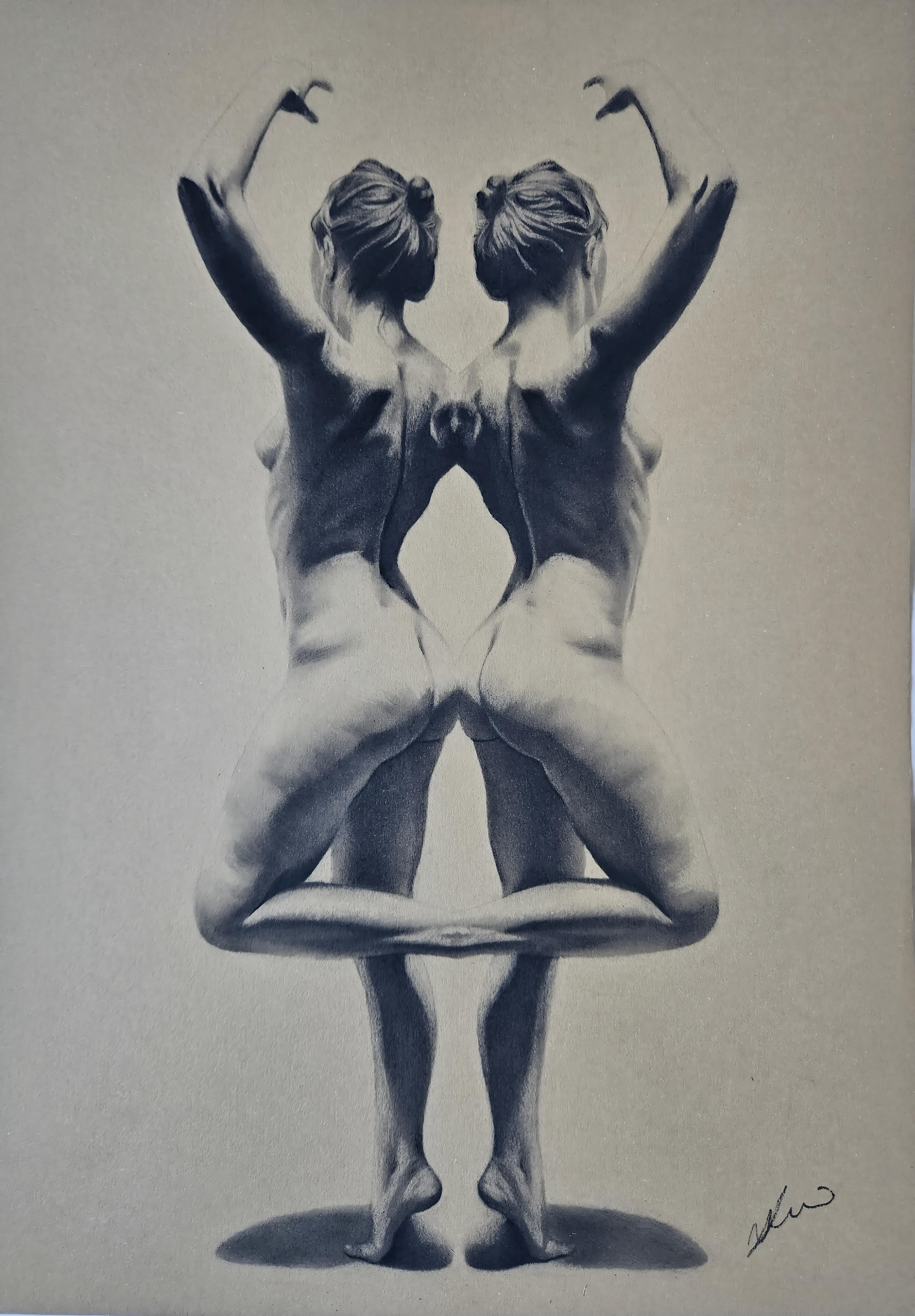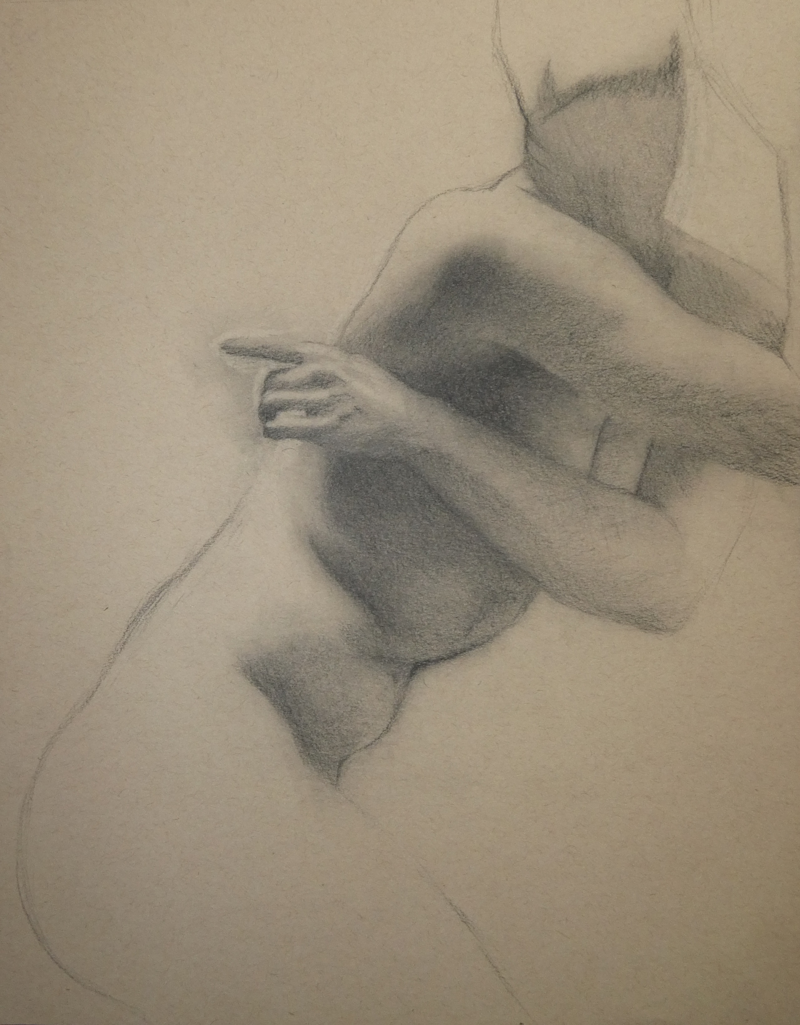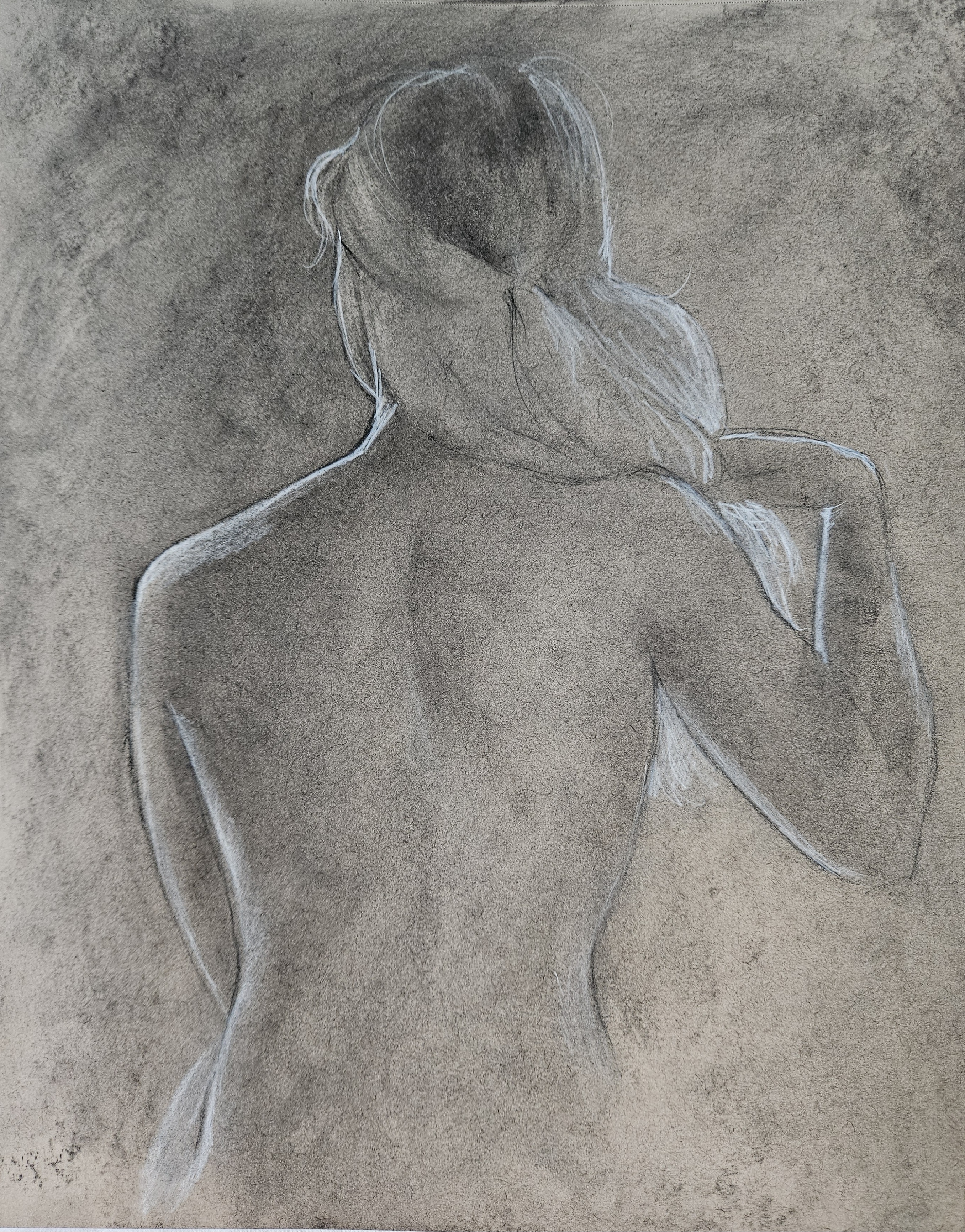 ‘Female figure pose’, charcoal on toned tan paper.