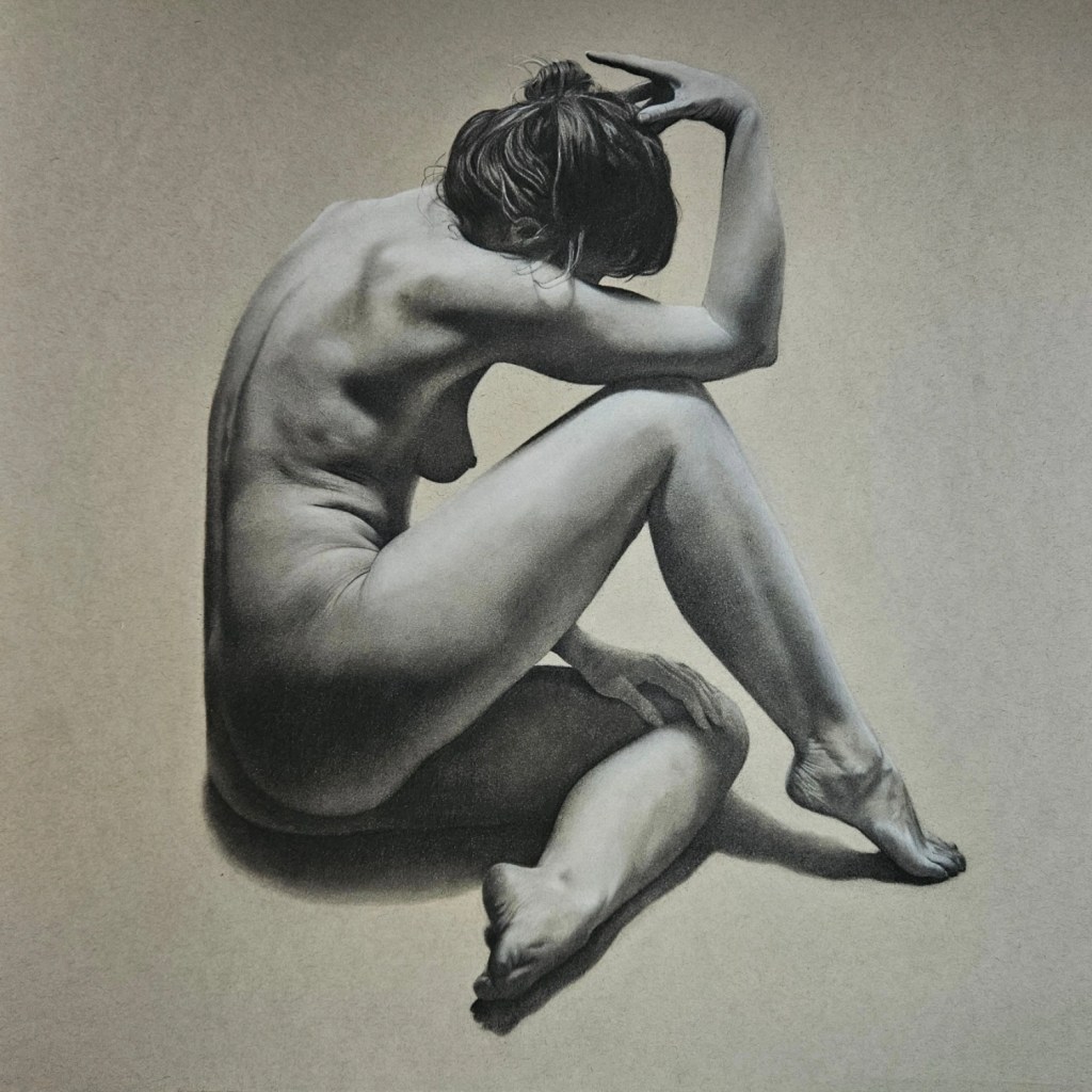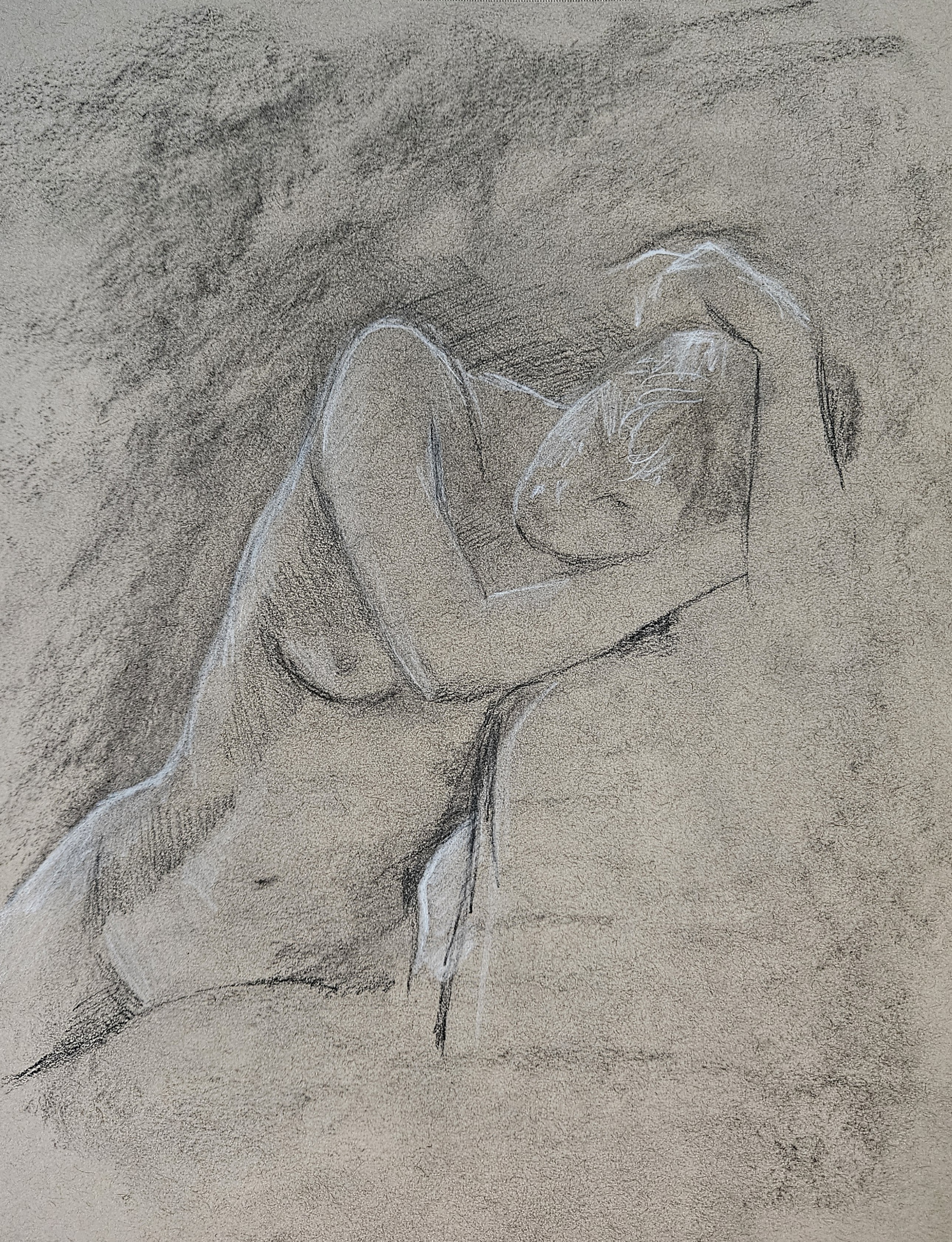 ‘Female seated life drawing’ Charoal on paper