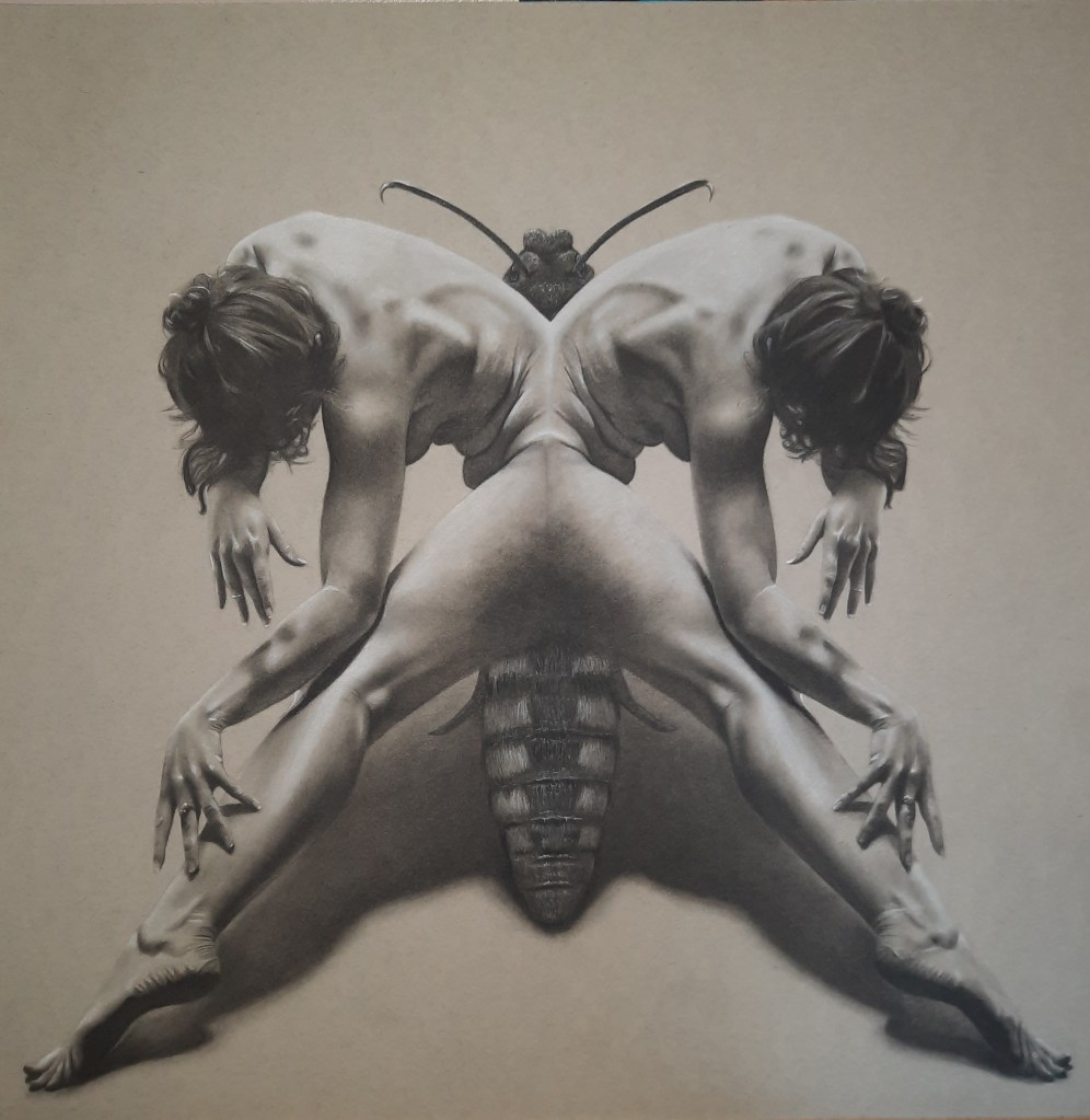 ‘Eclose’ Charcoal on toned grey paper.