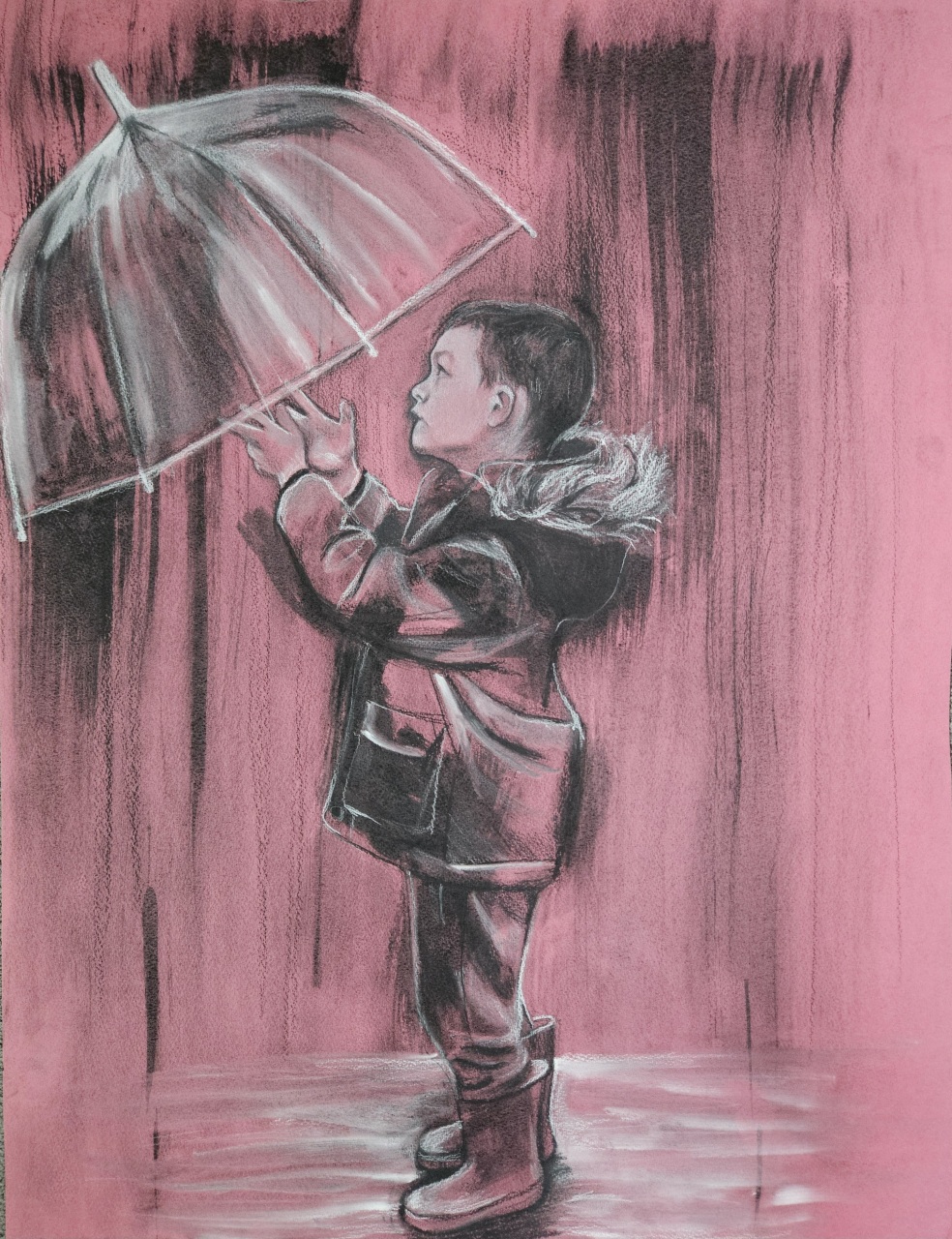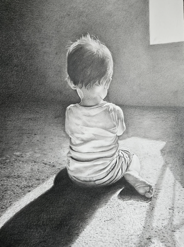 ‘Through his eyes’, Charcoal on paper, 2025