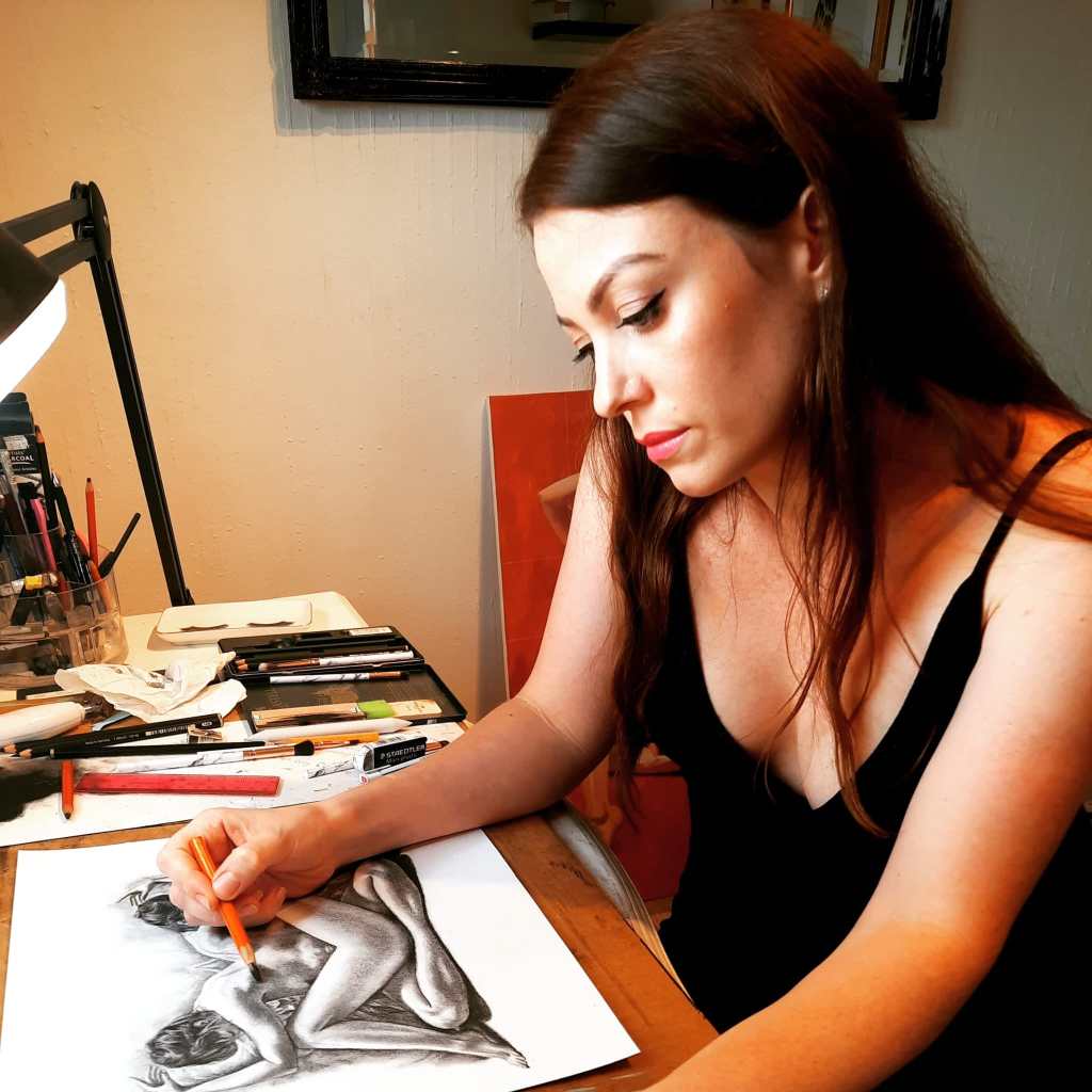 Based in East Sussex, I am a 36 year old figurative artist and mother of two Neurodivergent boys. I create deeply personal work shaped by motherhood, loss and growth. Working primarily in Charcoal- originally chosen for it’s practicality around children- I have developed a deep connection to it’s raw, expressive power.