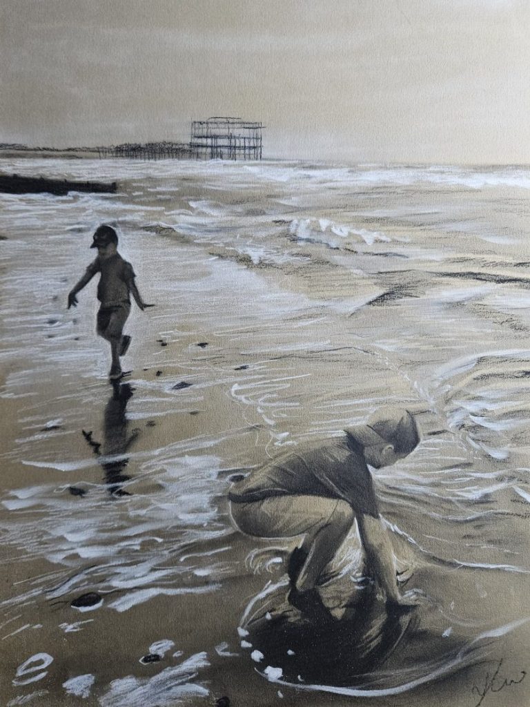 ‘Hove beach’ Charcoal on toned paper.